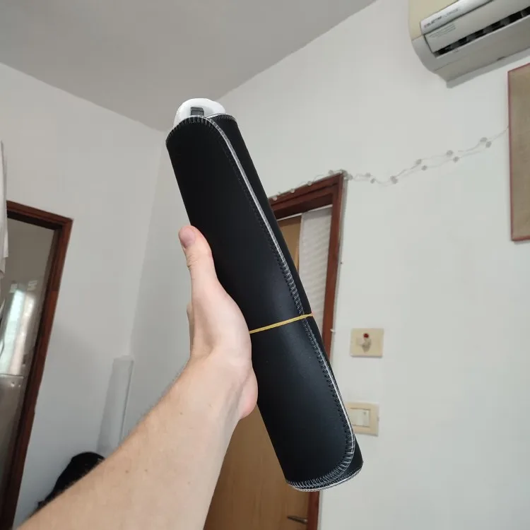 Felipe Pacocha Really good for the money. Rolled out, the corners weighed down a bit at the beginning. Now lies flat on the desk. I'm thrilled. Wanted a similar mousepad for years, but was always too expensive for me. Thank you to my friends from China :)